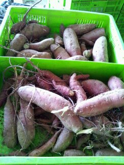 山梨ブランドの八幡芋の苗としたにはゴロゴロとお芋がついています